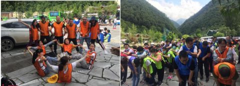 這次拓展活動(dòng)的主要環(huán)節(jié)是團(tuán)隊(duì)毅行,全體參與拓展的同事會(huì)按照既定路線徒步上山至索道平臺(tái)處,再折返回來,一路上每隊(duì)都需要完成10項(xiàng)任務(wù),例如收集團(tuán)隊(duì)人員的笑臉照片十張、給本團(tuán)隊(duì)一位女士編一個(gè)花環(huán)戴在頭上、團(tuán)隊(duì)成員擺出千手觀音造型錄制動(dòng)態(tài)視頻等。